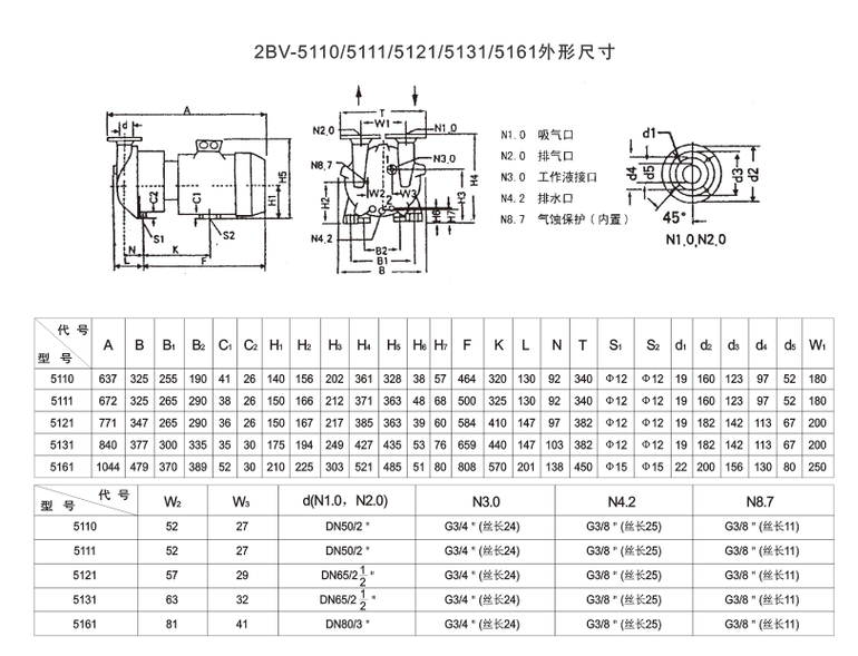 2BVA5121水環真空泵適用于抽除氣體和水蒸氣吸氣壓力可以達到33mbar絕壓(97%真空度)。當水環真空泵在吸氣壓力接近極限真空(工作液和蒸汽壓),下長期工作時,應聯接汽蝕保護管,以對泵進行保護。作為壓縮機用時,其壓力最大至0.26Mpo(絕壓)2BV系列水環真空泵作為新一代節能型產品,其出色的性能及眾多優點將全面取代同性能的SK2SK系列水環真空泵及WWYWL系列往復真空泵