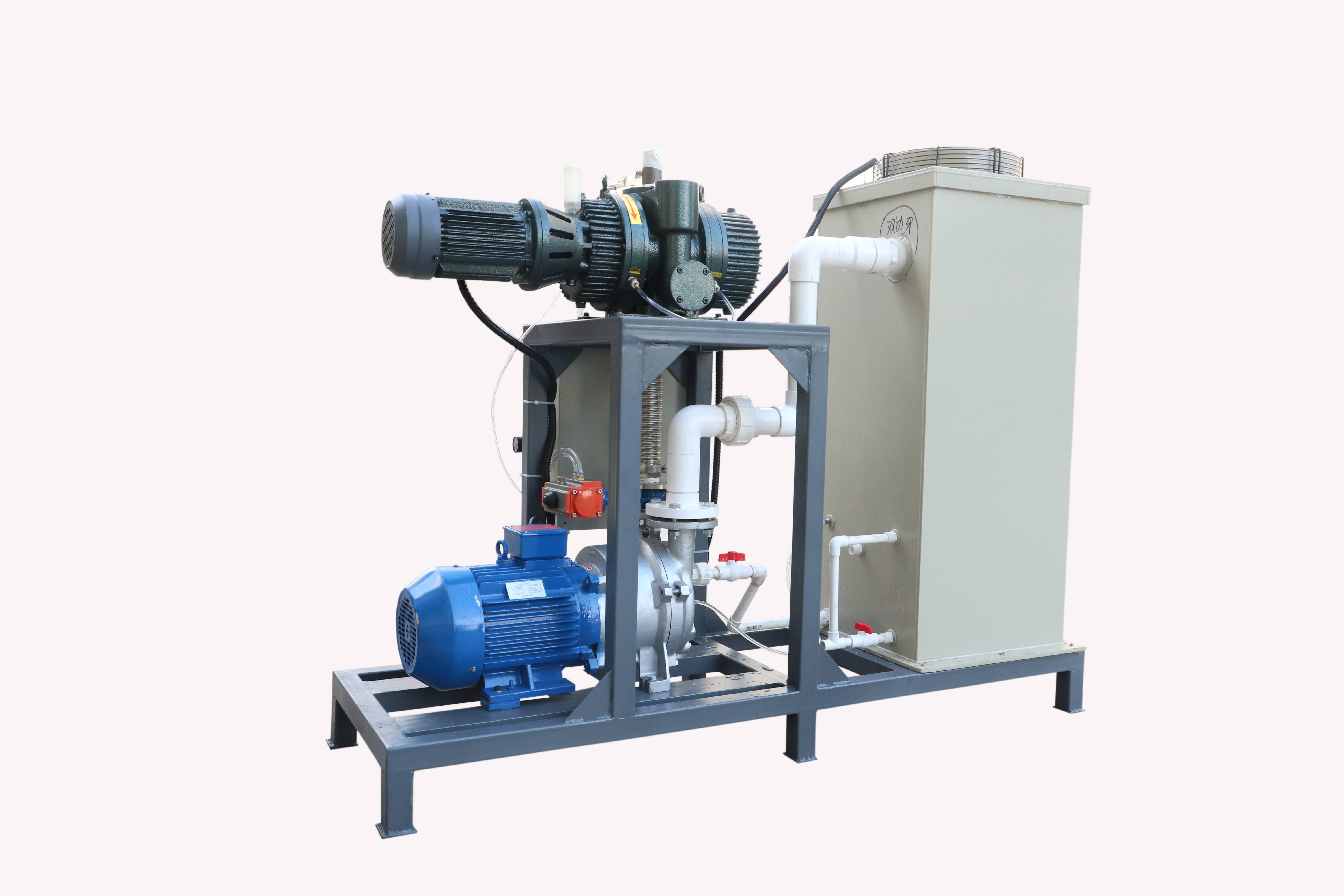 羅茨泵+水環泵:機組中水環泵的作用是造成羅茨泵所需的預備真空。